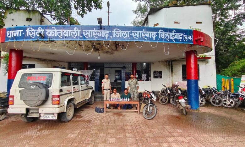 सारंगढ़। अवैध शराब की बिक्री और परिवहन पर रोकथाम के लिए पुलिस अधिकारियों के निर्देश पर थाना सिटी कोतवाली सारंगढ़ पुलिस को बड़ी सफलता मिली है।थाना प्रभारी कोतवाली निरीक्षक कामिल हक के मार्गदर्शन में पुलिस टीम ने मुखबिर की सूचना पर ग्राम पंचपेड़ी में घेराबंदी कर दो आरोपियों को मोटरसाइकिल सहित गिरफ्तार किया।