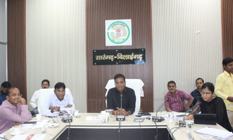 कलेक्टर ने सारंगढ़ में आगामी दशहरा की तैयारी की समीक्षा करते हुए कहा कि सारंगढ़ में सड़क के गड्ढे को शीघ्र ठीक करें। नालियों की सफाई कराएं। शहर में फागिंग और प्रकाश व्यवस्था करें। फसल सत्यापन, गिरदावरी और एग्रिस्टेक में किसान पंजीयन की समीक्षा में कलेक्टर ने सचिव, रोजगार सहायक, कोटवार, पटवारी, कृषि विस्तार अधिकारी आदि को समन्वय कर 2 अक्टूबर में मुनादी करने और ग्राम सभा की बैठक में किसानों की सूची चस्पा कर दावा आपत्ति प्रस्तुत कराने के निर्देश दिए। बैठक में धरती आबा, नगरीय निकाय क्षेत्र में सर्वे, जल जीवन मिशन, जाति प्रमाण पत्र, मल्टीविलेज जल आवर्धन, सड़क निर्माण में पेड़ कटाई, मौसमी बीमारी, रजत जयंती, सांसद खेल में खिलाड़ियों का पंजीयन आदि के संबंध में चर्चा की गई। इस अवसर पर अपर कलेक्टर प्रकाश सर्वे, एस के टंडन सहित जिले के अधिकारीगण उपस्थित थे।