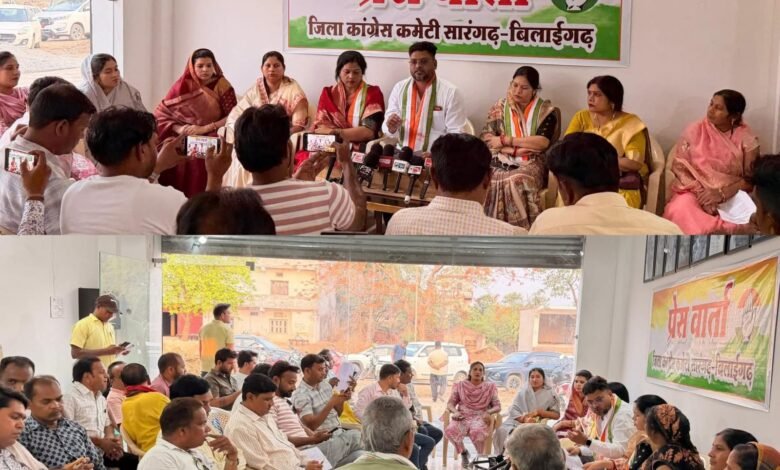 सारंगढ़ न्यूज़/ जिला कांग्रेस कार्यालय में महिला जिला कांग्रेस अध्यक्ष सरिता गोपाल, कांग्रेस जिलाध्यक्ष ताराचंद देवांगन, विधायक श्रीमती उत्तरी जांगड़े, विधायक श्रीमती कविता प्राण लहरें, श्रीमती सोनी अजय बंजारे नगर पालिका अध्यक्ष, श्रीमती मंजूलता आनंद सेवादल महिला प्रदेश अध्यक्ष, श्रीमती कोमल शशी पटेल जनपद सभापति ब्लॉक अध्यक्ष महिला कांग्रेस के साथ ही साथ वरिष्ठ कांग्रेसी नेताओं की उपस्थिति में प्रेस वार्ता संपन्न हुई।जिस प्रेस वार्ता में पत्रकारों के द्वारा विभिन्न प्रश्न किए गए, जिनका उत्तर कांग्रेस नेताओं और नेत्रियों के द्वारा दिया गया।