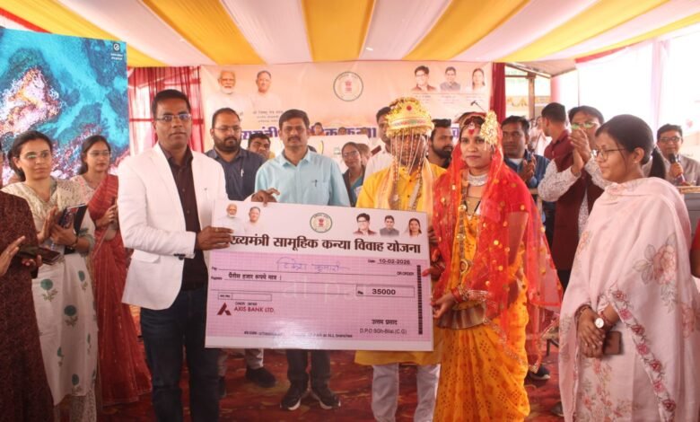 मुख्यमंत्री सामूहिक कन्या विवाह से राज्य सरकार जिले के सभी पात्र वर वधु को विवाह के बंधन में बंधने के लिए अवसर देता है। कलेक्टर ने 50 हजार रूपये में से 35 हजार की राशि का प्रतीकात्मक चेक वर वधुओं को प्रदान किया, जो उनके बैंक खाता में शासन द्वारा दिया जाएगा।