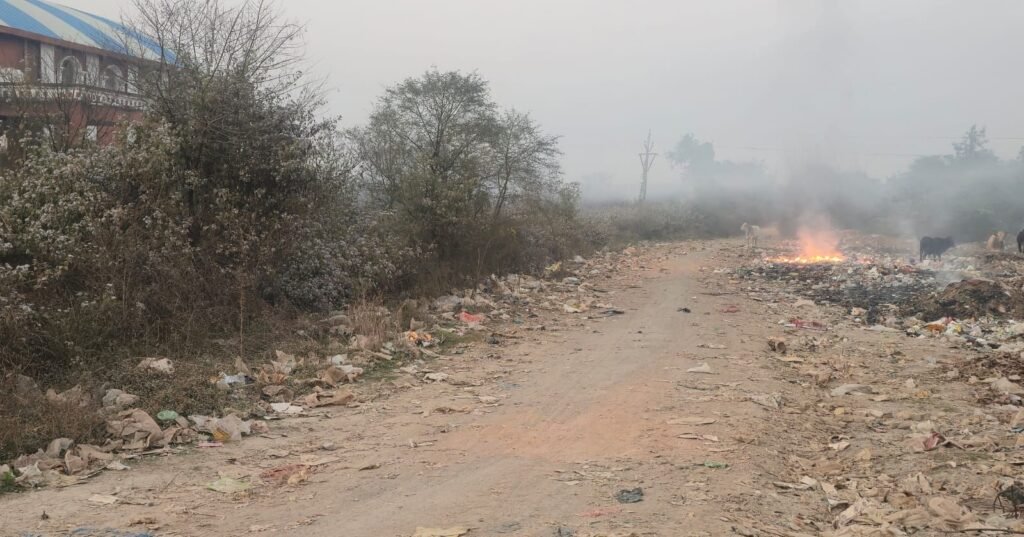 कचरो को जलाने से निरंतर बढ़ रहा प्रदूषण स्टेडियम में खिलाड़ियों को खेलने में हो रही तकलीफ